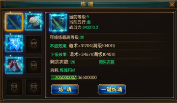 3.每天炼魂有免费次数,可消耗金币购买次数,点击界面中,购买次数超链接,可购买1次;