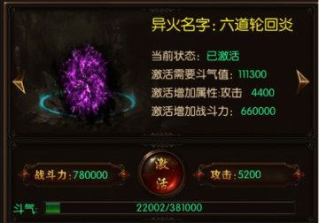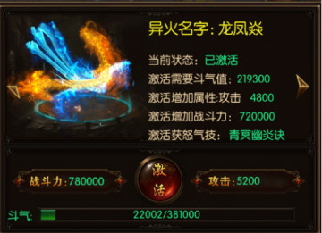 激活异火后就如同给自身随时携带了一个强悍的辅助,异火给角色带来的不单单只是战力的增加!激活异火除了可以大幅度提升自身战力,同时还可以提升大量的攻击属性,输出更给力。并且激活异火还可以获得异火技能,帮助你在刷怪和PK时快速战胜对手。