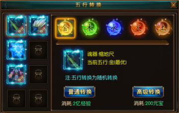 1.魂器转换为转换魂器五行:随机几率转换,每天不限次数;