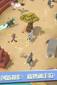 《疯狂动物园》是一款集3D像素、急速跑酷和模拟养成为一体的休闲小游戏。在游戏中你将扮演一名富有冒险精神的绝世牛仔。在高速移动的情况下与各种动物一较高下。你要尽可能多的套住动物,将它们统统带回飞船上的“空中动物园”中饲养;并进行园区升级,以便迎来世界各地的游客观赏赚取更多金币。 Now,让我们去好好大干一场吧!
