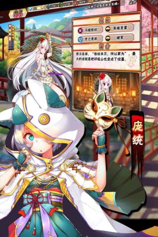 游戏采用所有的历史人物女性化,玩家可以查看各种武将“娘化”后的姿态,可爱型、妖艳型、清新型、御姐型的美少女武将应有尽有。