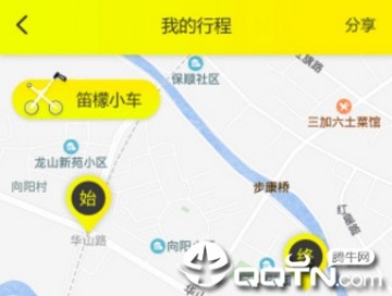2、小车贴有二维码,并写着“扫码一元用车”,右侧后轮安装四位密码锁。注册流程跟共享单车流程相似,需要手机注册和实名认证;