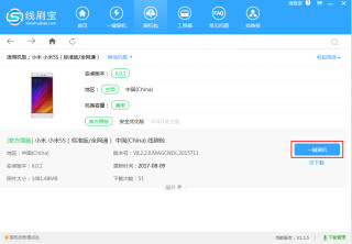第二步:在安卓手机救砖工具上查找自己的手机型号,找到对应的刷机包(这里以小米5S为例)。找到以后,点击“一键刷机”,安卓手机救砖工具就会开始下载这个刷机包。