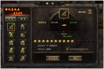 消耗强化石和金币强化角色和英雄的装备和神装部位,永久增加属性。