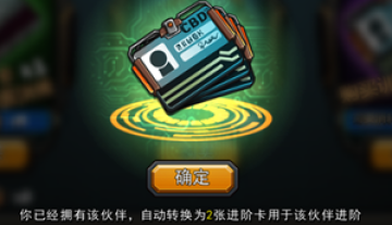 当你获得重复的伙伴时,会自动转化成印有其形象的卡片,消耗这些卡片可以对该英雄进行进阶。进阶会获得基础属性和一些稀有属性成长,运气好的话还可能会解锁新的技能。
