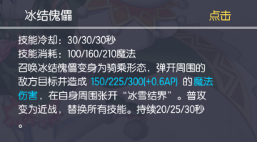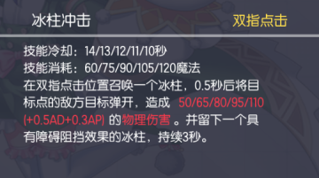 能分析:四萝莉的技能说明她是一个偏防守和辅助控制的英雄,她的1技能的命中率很低,大部分是用来清理兵线用,而到了5级,就有了小爆发,抓住对面的失误,1技能先丢,3技能把对面弹回1技能轨迹上,近身开大小击退,接A和1技能冰雾,取消大招立马释放1技能冰锥很容易配合队友击杀对方,甚至单杀。