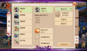 在装备强化界面,选择一件可以镶嵌的装备后,点击宝石即可进行宝石镶嵌。