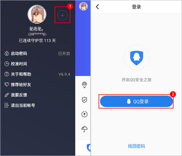 打开QQ安全中心手机版->点击左上角的头像进入->选择+号->QQ登录->验证身份证绑定即可。