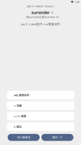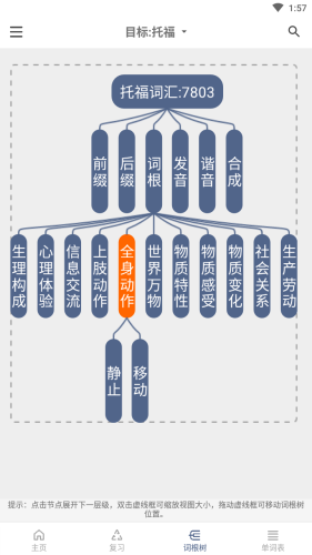 脑图单词app,科学的手机记单词软件,根据词根、词缀来记忆单词,让单词记忆更轻松。软件以脑图形式来拓展单词结构,加深记忆,解决凡此记忆烦恼,各种单词轻松记。