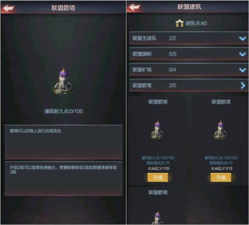 联盟箭塔是拥有自己的射程,会攻击前来占领、掠夺和伏击的敌军的联盟建筑,每个箭塔拥有自己的射程,一个领地上最多可以建造5个。联盟箭塔只能建在联盟领地范围内,多个联盟箭塔之间需要保持一定距离,箭塔的射程不能重合建造。