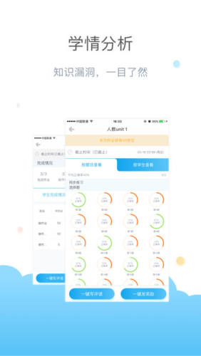 学情评估:强大的学情分析,系统自动推送错题和类题,学生知识点一目了然,布置薄弱知识点巩固练习更方便;