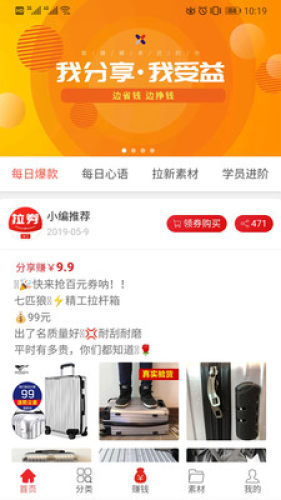 拉券APP,一款方便网购达人购物生活的省钱工具,涵盖服装、百货、美妆、鞋包、生鲜等应有尽有,一款专注于高性价比商品的导购平台,海量大额优惠券每日更新,让您会购物,惠生活...