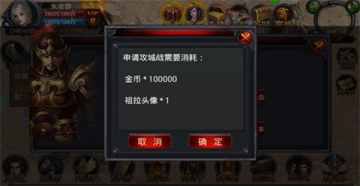 报名皇城争霸时,需道具“祖拉头像”及部分金币【10W】