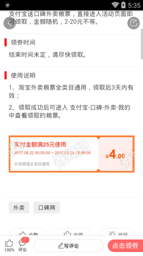 5.淘宝外卖粮票领取成功