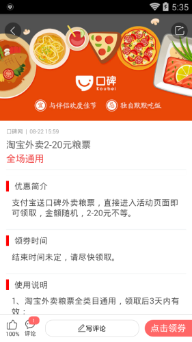 淘宝外卖粮票领取app是一款免费发放淘宝粮票的分享app,淘宝外卖粮票领取app每日都会限量分享一些淘宝粮票的链接,点击链接进去输入你的淘宝账号就可以免费得到金额不等的粮票了。是你点外卖吃饭节约钱的神器。有需要的朋友快来下载体验吧!