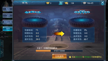 对角色提升最为全面、幅度最大,却也相对比较困难的就是境界提升。完成佣兵任务和爬塔副本可获得境界点,境界点可以进阶境界,《武炼巅峰》忠于原著,还原小说中的淬体境、开元境、离合境、气动境、真元境、神游镜、超凡境、入圣境、圣王境、返虚境十重境界。随着不同境界提升,角色属性在伤害吸收、物理攻击、法术攻击、道术攻击这四个方面有所提升。