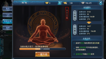 金身可以抵消角色受到的部分伤害,打怪的同时,不但有经验可以拿,也有金身经验。消耗金身经验可升级金身层级,获得更高的属性。