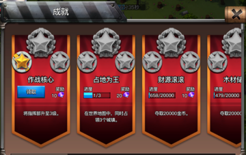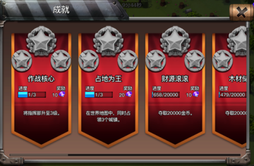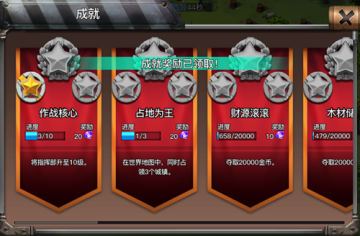 在成就系统中包含许多不同的成就,当玩家满足成就条件时,将会完成该成就,并获取一次性的钻石奖励。每类成就都包含不同的阶段,完成每一阶段都有钻石奖励。