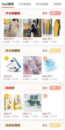 2、【热销榜单】销量榜、人气榜、复购榜,多维度商品榜单,全方位提高推广效果,体验高转化