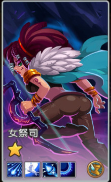 女祭司:后排辅助型射手,给全队提供大量增益效果。包括提高移速、攻速、物理伤害和魔法伤害。