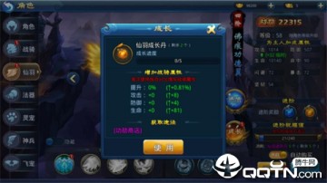 在仙羽升级到指定阶数后,可以开启仙羽成长系统。仙羽阶数越高,成长等级上限越大。使用仙羽成长丹可以升级成长等级,成长等级升级后会增加百分比属性,同时增加人物属性。