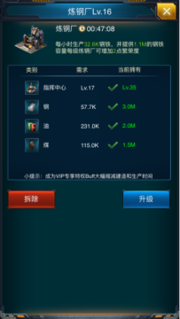 7.炼钢厂技决定着内矿的产量,每次军团战后,双倍矿产量,如果加上装置车间的加速矿开采效果不同一般,千万不要怜惜了几个勋章,多造加速,军团战是需要两个团体才能进行的,团员们都要积极的参与贡献,军团资金额要参与竞拍报名的。