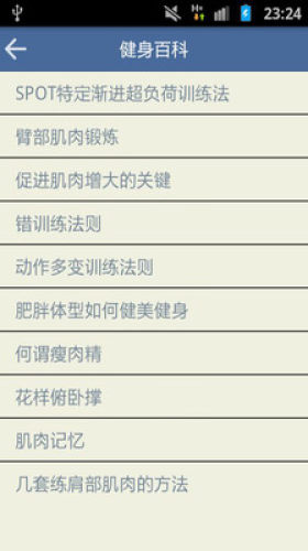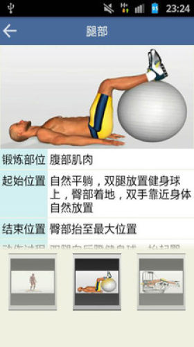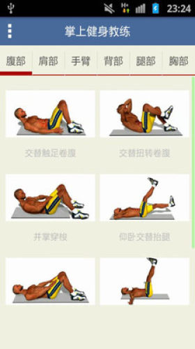 掌上健身教练包含数十种不同的健身教程和方法,每一种都详细的配合图片解说,告诉您该动作是锻炼什么部位,以及动作要领。