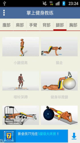 掌上健身教练,这是一个非常全面的健身百科,这里有全身从腿部到肩部的运动说明,有需要的快来下载吧!每一个身体部位都可以运动到。