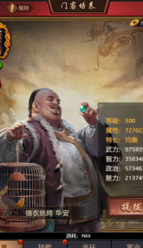 4、属性丹:不得不说一个门客高长恭,6元首冲值得拥有,还有cdk兑换的魏征。前期武力的的丹药最好给高长恭,其他丹药可以给魏征。针对性的属性丹给擅长能力和针对资质高的门客。随机丹的话给综合资质高的。但要记住丹药集中给你想要培养的门客吃,不要分散到每个门客身上。ps:武力很关键,副本,联盟boss以及过关卡的兵力消耗跟武力有很大关系