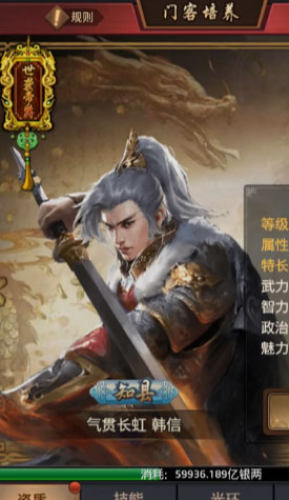 2、门客系统,数十位朝中赫赫有名之士悉数登场;