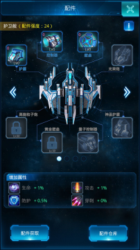 配件可以增加舰船的生命、攻击、防护以及穿刺效果。