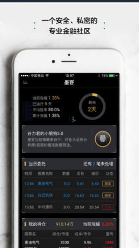 墨客iOS版是专门为金融理财服专业人士打造的手机app,提供策略同步操作,界面简洁易懂,覆盖了客户交易周期管理各阶段的不同需求,感兴趣的朋友,赶快来下载体验吧!
