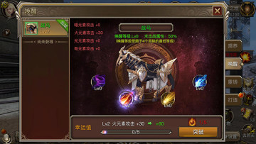 通过坐骑唤醒功能,能够使坐骑获得暗、火、光、电四大属性的加成效果,唤醒提升每种对应元素的属性,都需要消耗相应元素的宝珠。