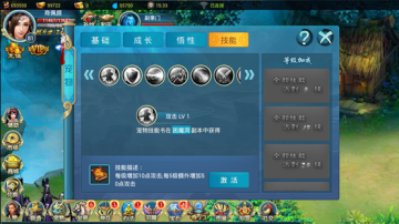 技能:宠物技能书可在商城中购买,技能修炼达到一定等级后还有额外的属性加成。