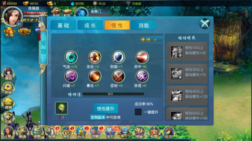 悟性:角色45级开启宠物悟性,提升悟性可以获得大量属性加成,每天都可以免费提升1次悟性;悟性达到一定条件还可以激活悟性境界:奇兽、灵兽、仙兽、神兽、圣兽,每达到一定阶段,都可以获得额外加成
