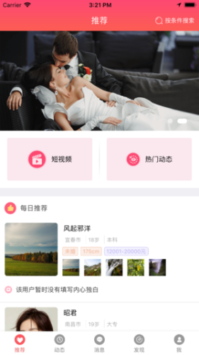 幸福婚恋iOS版是一款好用的社交软件,大家可以在这里填写资料,在这里邂逅各种喜欢的朋友,让你在软件内成功交友,再也不用经历催婚,欢迎各位感兴趣的朋友们下载使用。