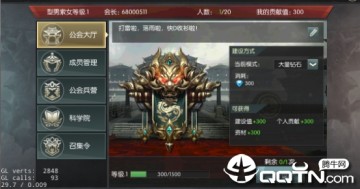 在公会大厅中,每个玩家每天可以参与公会建设1次,建设分“铜币”、“少量钻石”、“大量钻石”3种方式,每种方式获得的建设值、个人贡献、资材都不相同。