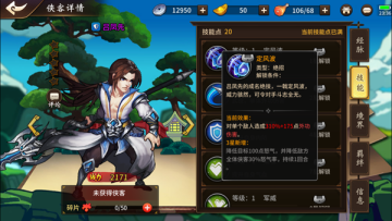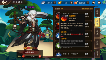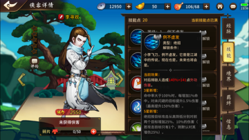 与吕凤先相似,白天羽同样也是一位拥有特殊能力的防御型侠客。他的大招可以对前排敌人附带20%最大生命值的伤害,前期效果不是非常明显。但是一旦到了大后期,所有防御型侠客的气血值都非常高的情况下,这一招千魔恸哭能造成致命的伤害。之后对付小身板的进攻型和技巧型侠客就是砍瓜切菜。
