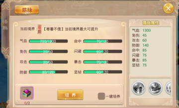 2.筋脉:境界培养至满级后可进行突破,从而获得特殊境界技能,突破祝福值第二天会被清空,请小伙伴注意!