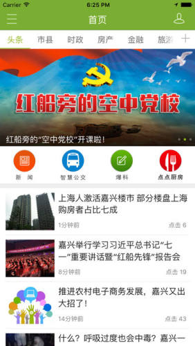 点击功能列表中的“新闻”按钮:阅读嘉兴和国内外发生的重大新闻事件。