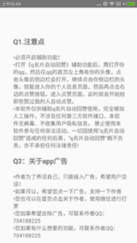 2、操作非常简单,只需要打开qq名片自动回赞后,启动辅助功能,然后再打开qq的个人页面,进入《点赞》功能,q名片自动回赞就会启动,帮你实现自动每天一个好友10次的点赞。