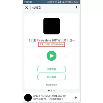 并且,在出现的这个朗读页面里,还贴心地列出了这篇文章的「字数」,以及全篇读完所需的「时间」,还有「文件大小」。