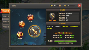 1.激活和升级内功技能需要消耗对应内功技能书,升级后可以永久增加人物各项属性。