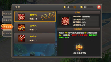 ⑴绵骨咒:攻击时有一定概率降低敌人的移动速度并加深伤害,持续2秒。