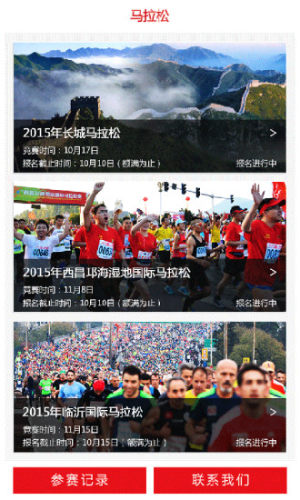 合作赛事:西昌马拉松、衡水湖马拉松、盘锦马拉松、长城马拉松、临沂马拉松等,即将合作赛事有北京马拉松、厦门马拉松、上海马拉松、杭州马拉松、宁波马拉松等等。一站式马拉松报名服务。