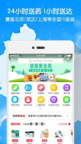 O2O业务:目前已开通武汉、上海、北京、郑州、济南、福州、南京、昆山、新疆、芜湖、苏州、杭州、广州、天津、青岛共计15个城市站,以上城市支持急速送药上门业务。