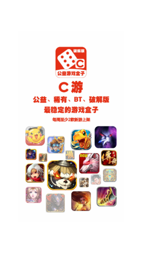 C游公益游戏盒子,提供了公益、稀有、BT、破解版等类型游戏,每周至少2款新游上架,是一个超级稳定的游戏盒子。