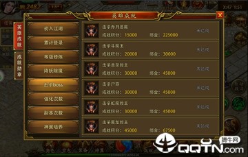 通过击杀怪物、通关副本、升级装备、参与活动等,均可得到大量的成就积分。