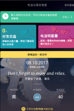 5.通过电波占星实验室可以查看你今天的运势哦,包括你今天的幸运颜色、幸运数字和幸运方向都会详细显示,如果你是个星座迷,你一定会喜欢这个功能的