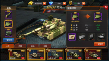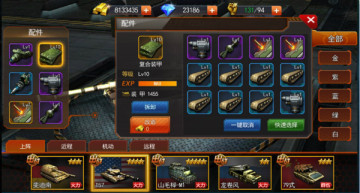 ¨战车的基础装备有三种:火炮系统、核心装甲、动力装置,装备可进行升阶,升阶所消耗材料可在副本掉落中获得。装备可进行卸下操作,升阶上限受战车品质影响